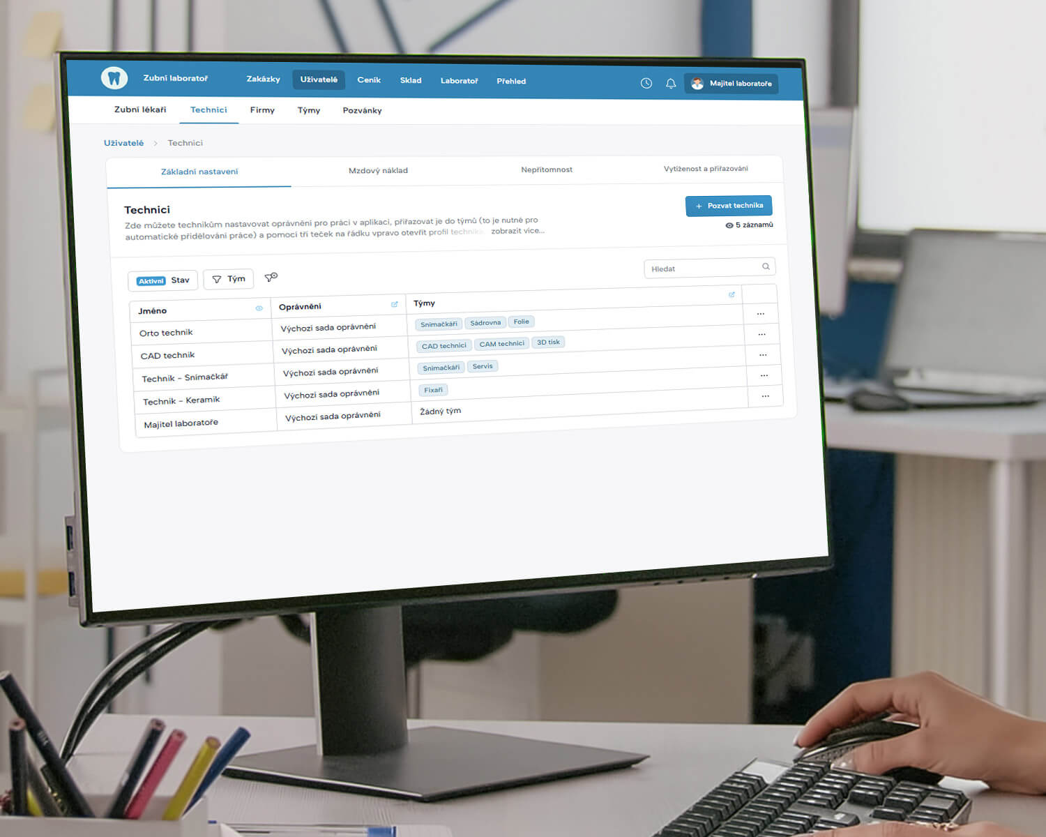 Lékař jsi při zadávání zakázky zvolí typ práce. Systém sám určí techniky s potřebnými kompetencemi, zhodnotí jejich vytíženost a automaticky přiřadí zakázku tomu nejvhodnějšímu.