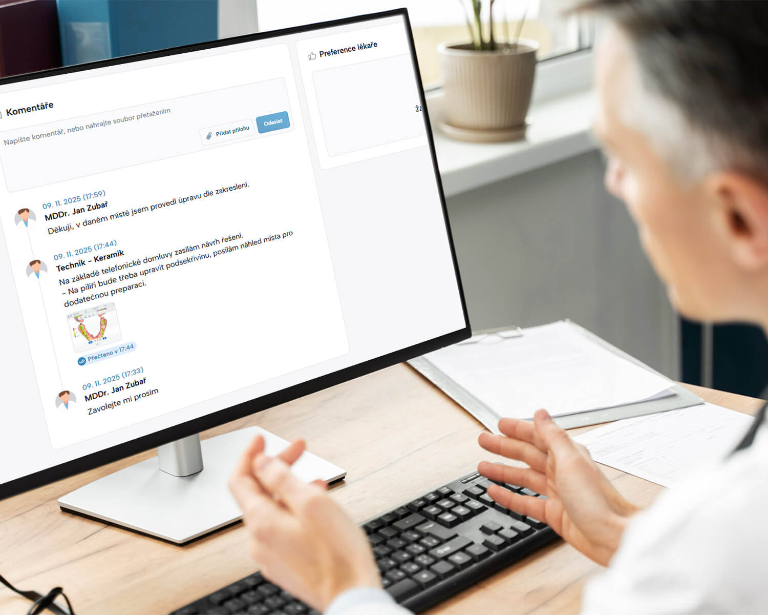 Ke každé zakázce mohou technici i lékaři přidávat komentáře a fotografie. Díky tomu se práce nezdržuje a odpadá neustálé nahánění po telefonu.